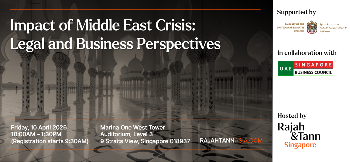 By submitting this form, you consent to Rajah & Tann Singapore LLP collecting and processing your Personal Data in accordance with Rajah & Tann Singapore LLP's Privacy Policy, available online at https://www.rajahtannasia.com/privacy. Your Personal Data may also be shared with the UAE Singapore Business Council, in connection with their co-hosting of the event.